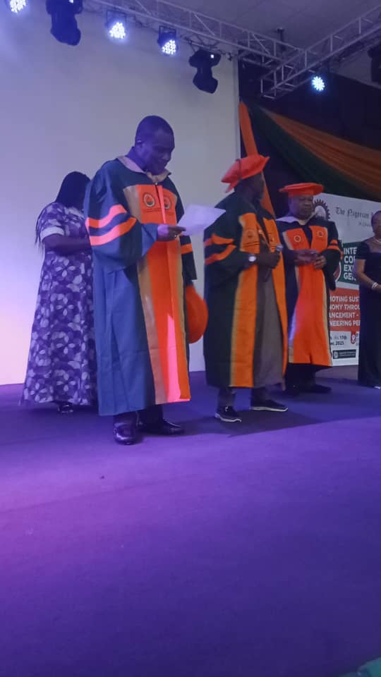 The honour was bestowed on Thursday night, during the 38th International Conference, Exhibition and Annual General Meeting of the Institution, held under the theme “Promoting Sustainable Economy Through Technological Advancement – The Mechanical Engineering Perspective.”
